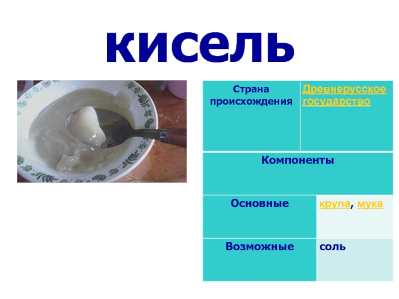 более 1000 лет. Кисели были повседневным блюдом, а также и обрядовым блюдом на поминках, тризнах.