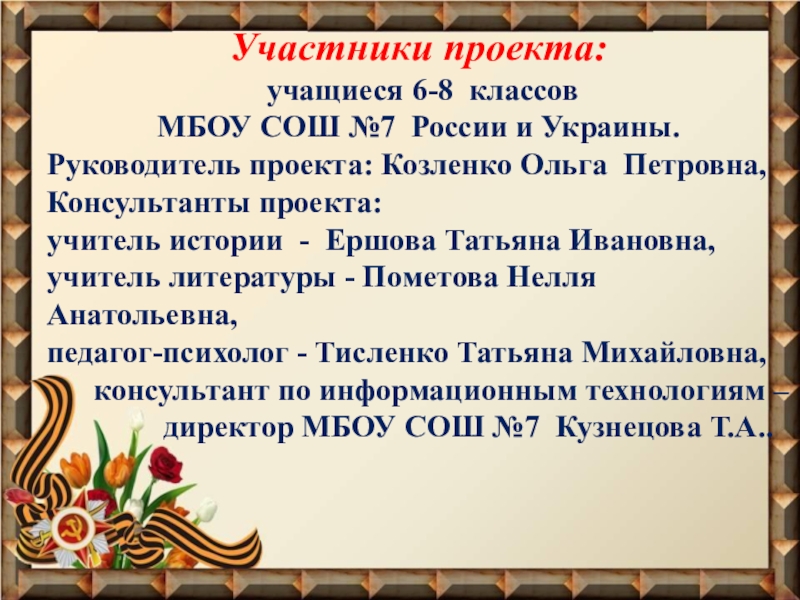 Руководитель проекта: Козленко Ольга Петровна, Консультанты проекта: