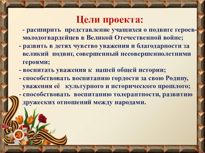 - воспитать уважения к нашей общей истории;