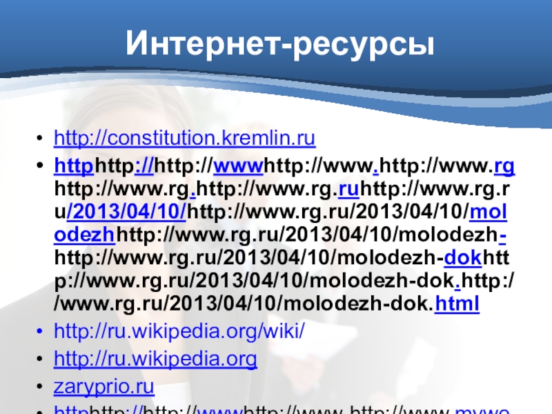 Это сайт презентаций, где можно хранить и обмениваться своими презентациями, докладами, проектами, шаблонами в формате PowerPoint с другими пользователями. Мы помогаем школьникам, студентам, учителям, преподавателям хранить и обмениваться учебными материалами.