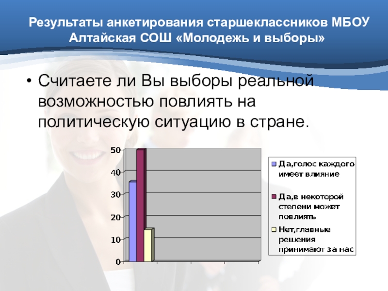 - выявить отношение старшеклассников МБОУ Алтайская СОШ к выборам;