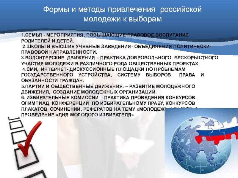 Формы и методы привлечения российской молодежи к выборам