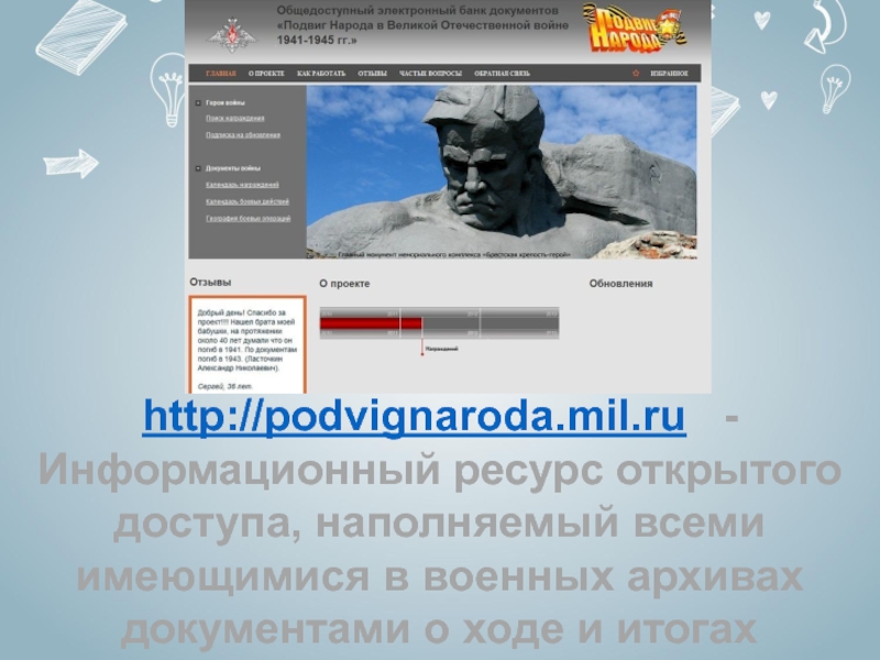 Слайд 17http://podvignaroda.mil.ru - Информационный ресурс открытого доступа, наполняемый всеми имеющимися в