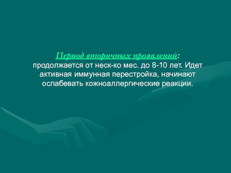 продолжается от неск-ко мес. до 8-10 лет. Идет активная