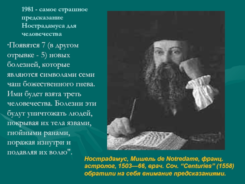 Слайд 31981 - самое страшное предсказание Нострадамуса для человечества