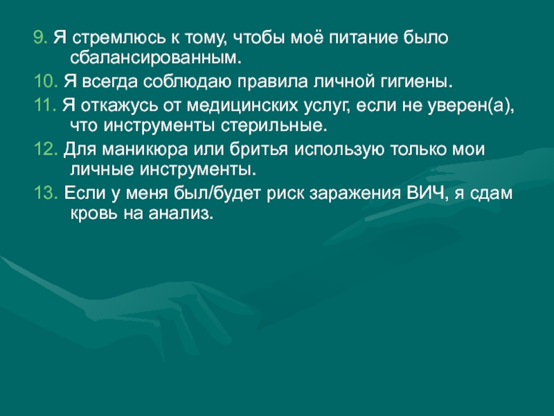 13. Если у меня был/будет риск заражения ВИЧ, я сдам кровь на анализ.
