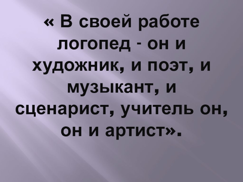 Слайд 2« В своей работе логопед - он и художник, и поэт,
