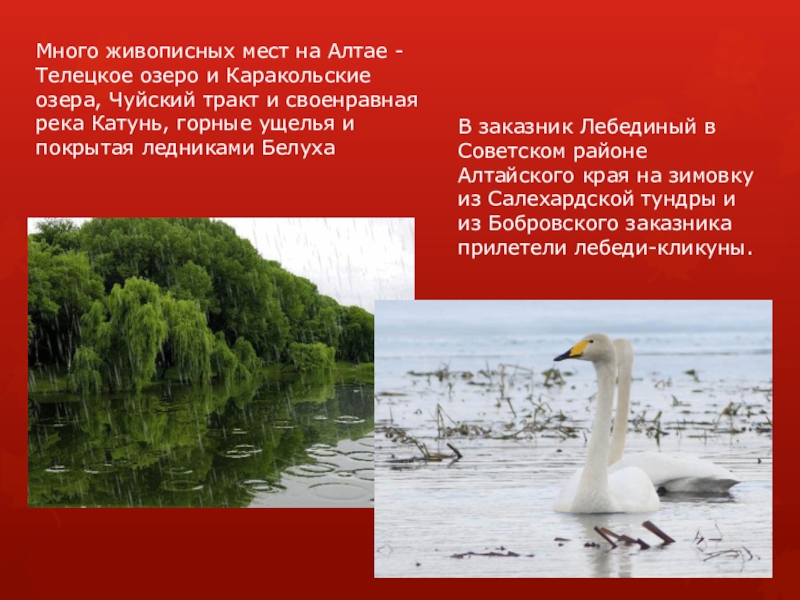 В заказник Лебединый в Советском районе Алтайского края на зимовку из Салехардской тундры и из Бобровского заказника прилетели лебеди-кликуны.