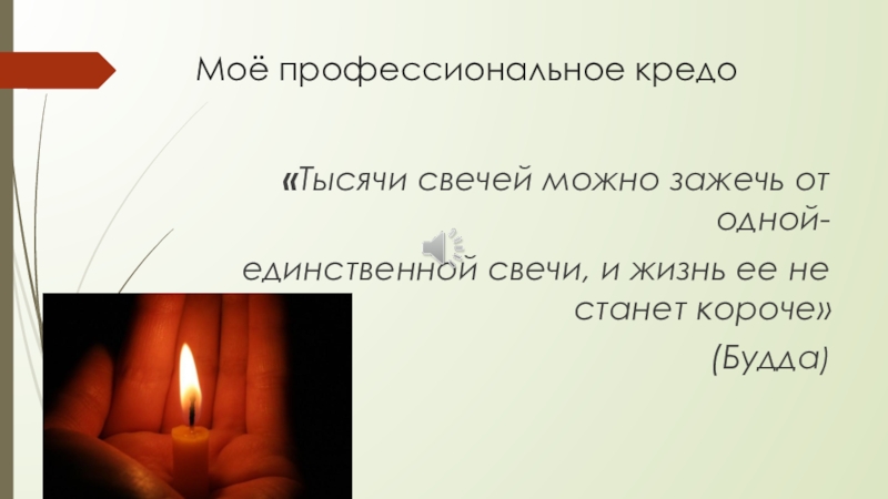 Моё профессиональное кредо«Тысячи свечей можно зажечь от одной-единственной свечи, и жизнь ее не станет короче» (Будда)