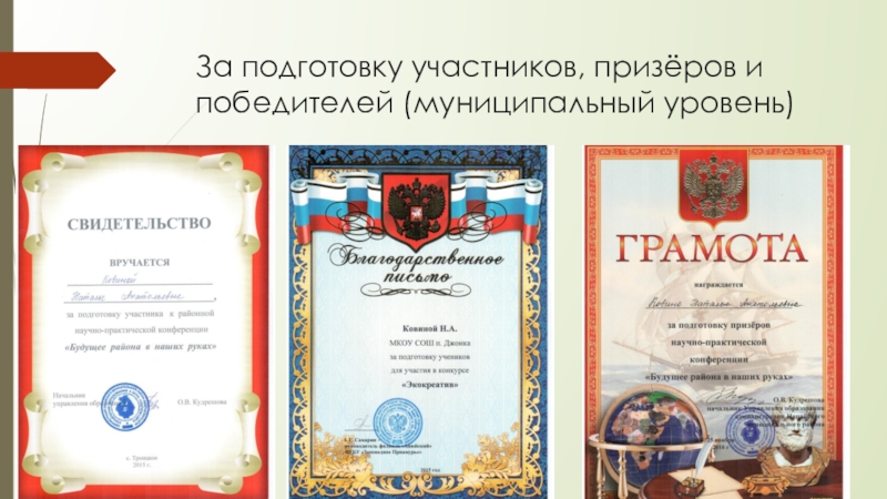 За подготовку участников, призёров и победителей (муниципальный уровень)