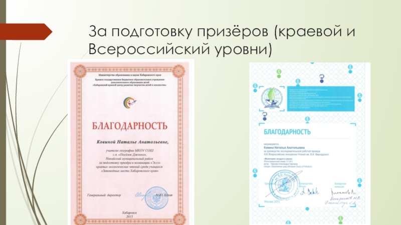 Слайд 17За подготовку призёров (краевой и Всероссийский уровни)
