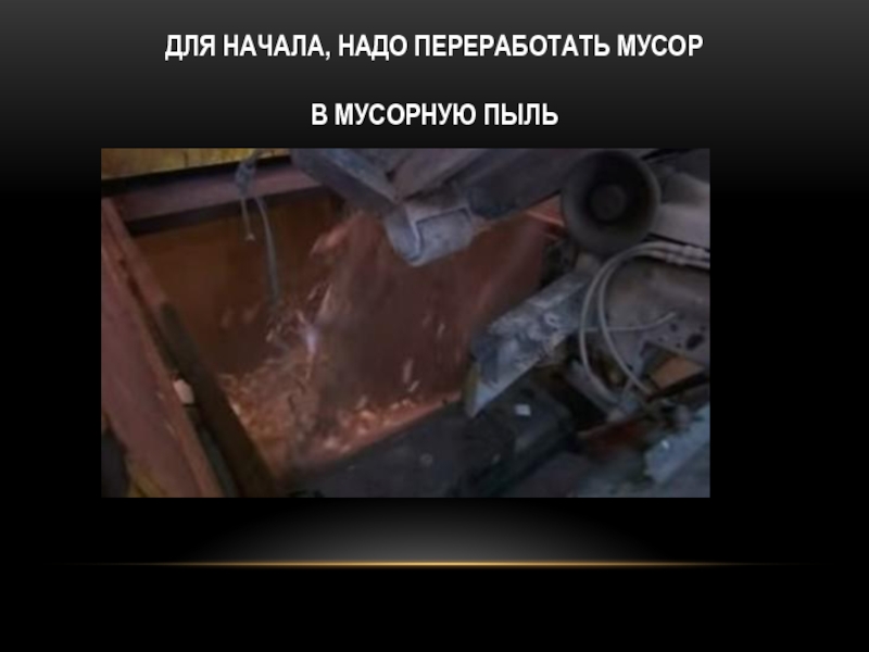 Слайд 13ДЛЯ НАЧАЛА, НАДО ПЕРЕРАБОТАТЬ МУСОР В МУСОРНУЮ ПЫЛЬ