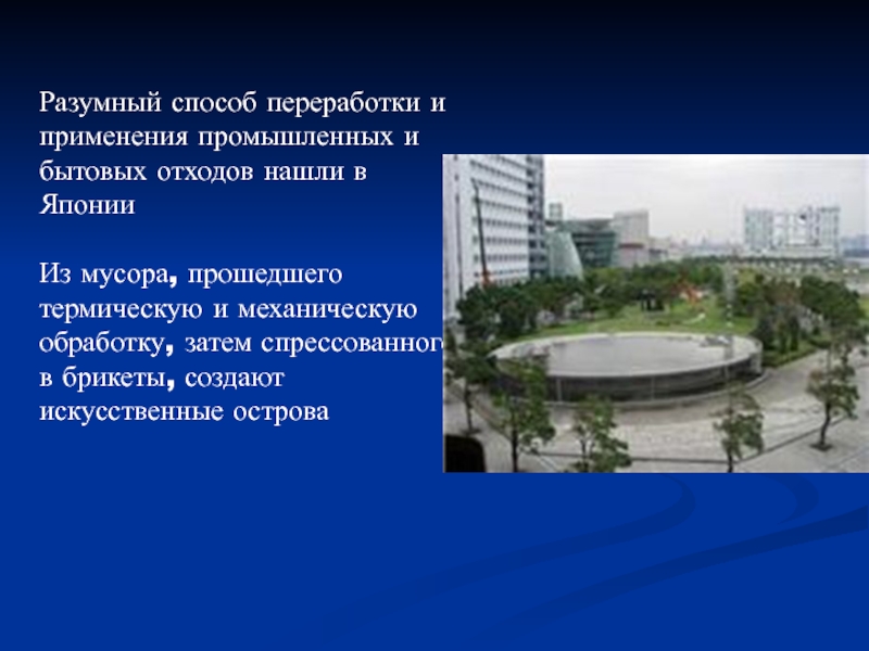 Разумный способ переработки и применения промышленных и бытовых отходов нашли в ЯпонииИз мусора, прошедшего термическую и механическую обработку, затем спрессованного в брикеты, создают искусственные острова