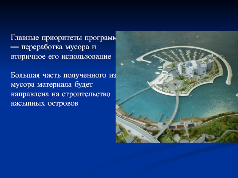полученного из мусора материала будет направлена на строительство насыпных островов