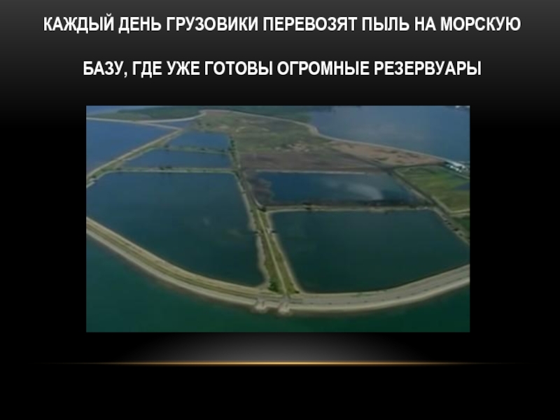 Слайд 14КАЖДЫЙ ДЕНЬ ГРУЗОВИКИ ПЕРЕВОЗЯТ ПЫЛЬ НА МОРСКУЮ БАЗУ, ГДЕ УЖЕ ГОТОВЫ