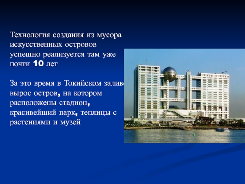 Слайд 5Технология создания из мусора искусственных островов успешно реализуется там уже почти