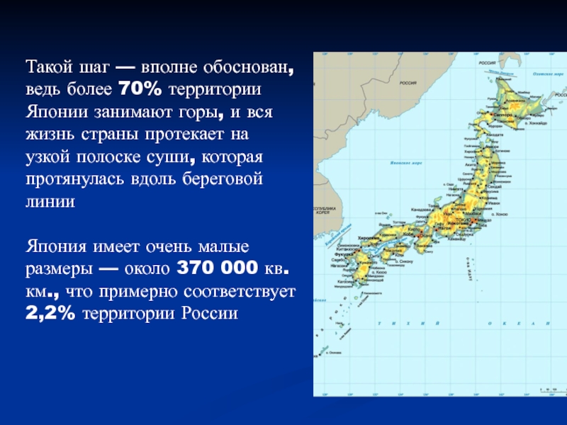 Слайд 3Такой шаг — вполне обоснован, ведь более 70% территории Японии занимают
