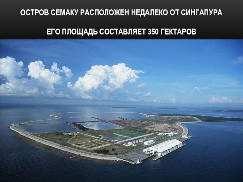 Слайд 10ОСТРОВ СЕМАКУ РАСПОЛОЖЕН НЕДАЛЕКО ОТ СИНГАПУРА ЕГО ПЛОЩАДЬ СОСТАВЛЯЕТ 350 ГЕКТАРОВ