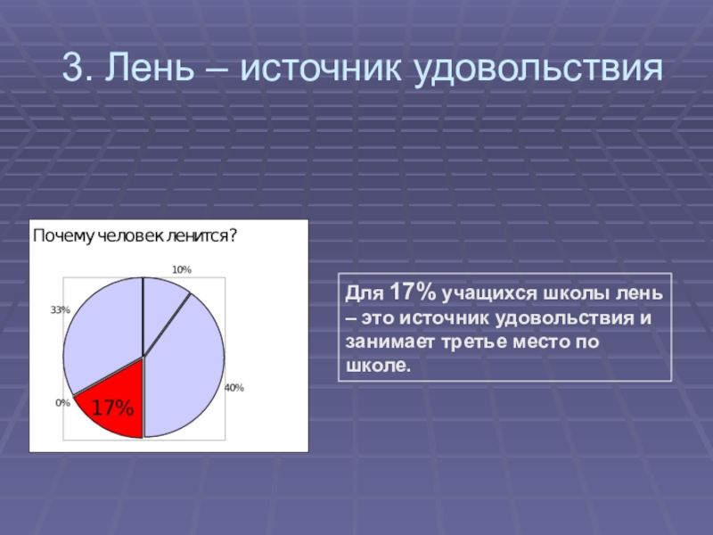 33% учащихся нашей школы считают, что причиной их лени является усталость. Это второе место по школе.