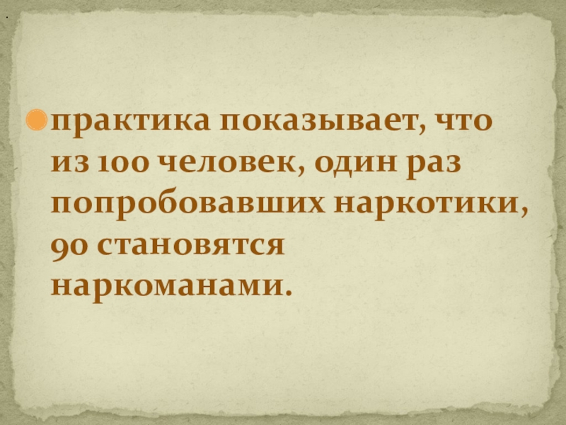 Слайд 11практика показывает, что из 100 человек, один раз попробовавших наркотики, 90