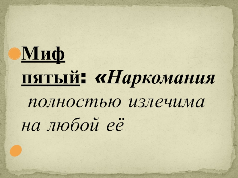 Слайд 29Миф пятый: «Наркомания полностью излечима на любой её