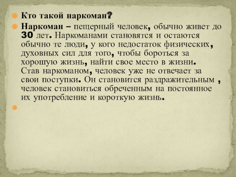 Наркоман – пещерный человек, обычно живет до 30 лет. Наркоманами становятся
