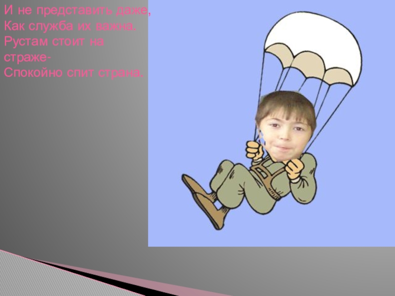 И не представить даже,Как служба их важна.Рустам стоит на страже-Спокойно спит страна.