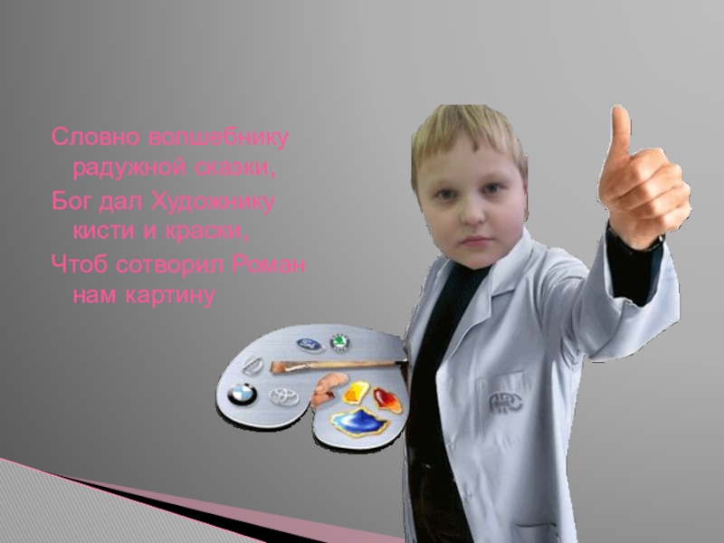 Словно волшебнику радужной сказки,Бог дал Художнику кисти и краски,Чтоб сотворил Роман нам картину