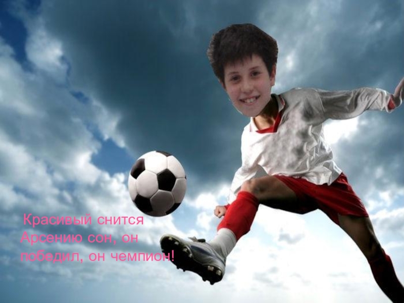 Слайд 12 Красивый снится Арсению сон, он победил, он чемпион!
