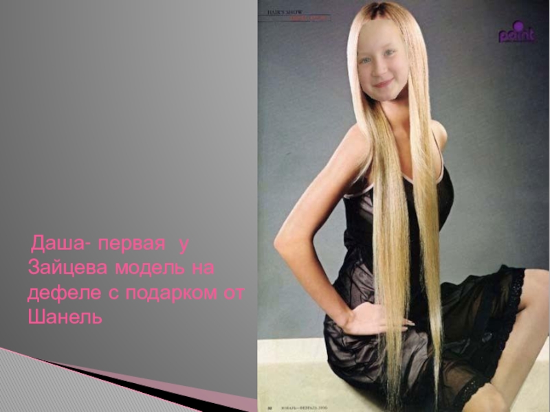 Слайд 13 Даша- первая у Зайцева модель на дефеле с подарком