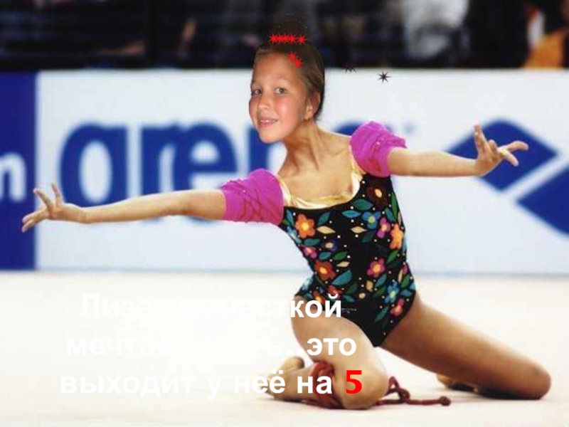 Лиза гимнасткой      мечтает стать..это выходит у неё на 5