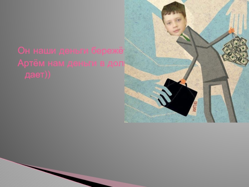 Он наши деньги бережётАртём нам деньги в долг дает))