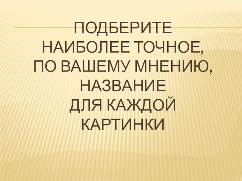 Слайд 1Подберите наиболее точное, по вашему мнению, название для каждой картинки