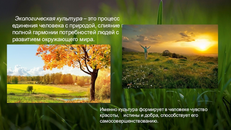 Именно культура формирует в человеке чувство красоты, истины и добра, способствует его самосовершенствованию.