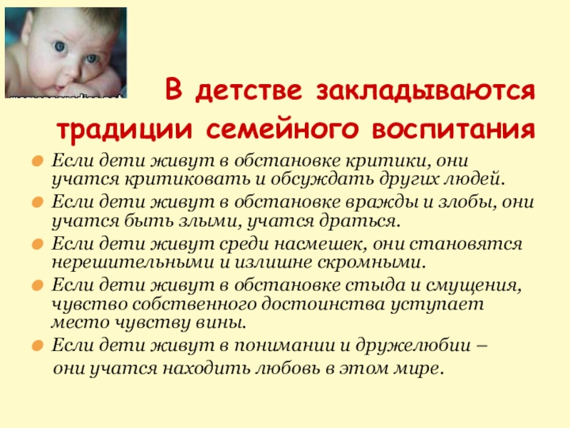 Если дети живут в обстановке критики, они учатся критиковать и обсуждать других людей.