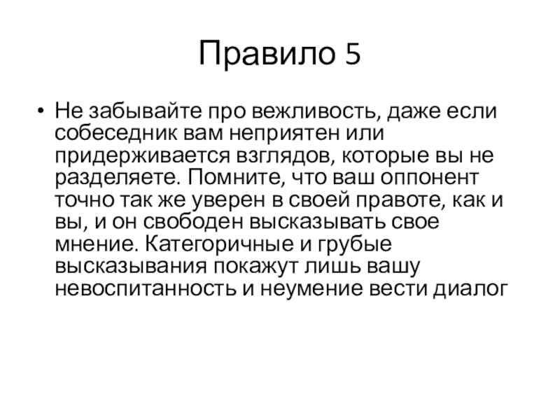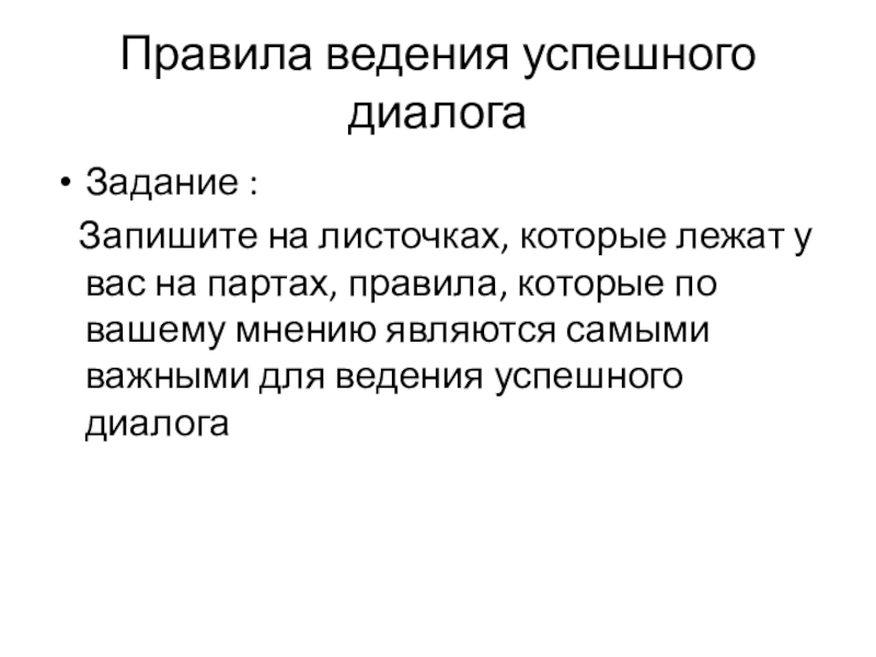у вас на партах, правила, которые по вашему мнению являются самыми важными для ведения успешного диалога