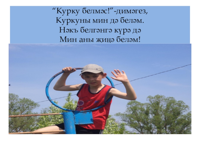 Слайд 11“Курку белмәс!”-димәгез, Куркуны мин дә беләм. Нәкъ белгәнгә күрә дә Мин аны җиңә беләм!