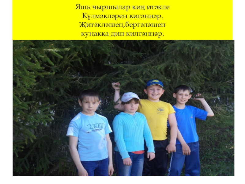 Слайд 26Яшь чыршылар киң итәкле Күлмәкләрен кигәннәр. Җитәкләшеп,бергәләшеп кунакка дип килгәннәр.