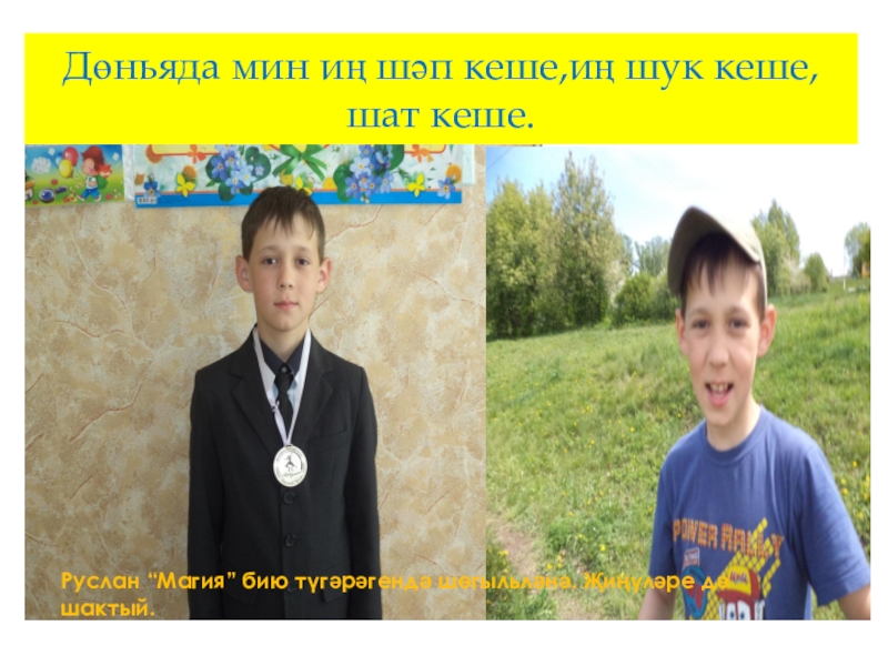 Дөньяда мин иң шәп кеше,иң шук кеше,шат кеше.Руслан “Магия” бию түгәрәгендә шөгыльләнә. Җиңүләре дә шактый.