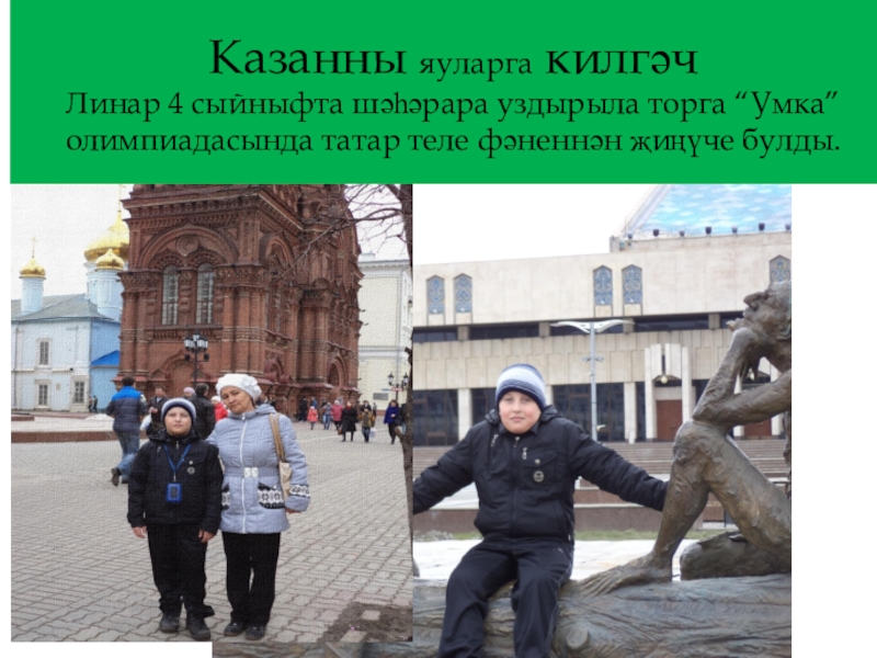 Слайд 7Казанны яуларга килгәч Линар 4 сыйныфта шәһәрара уздырыла торга “Умка”олимпиадасында татар теле