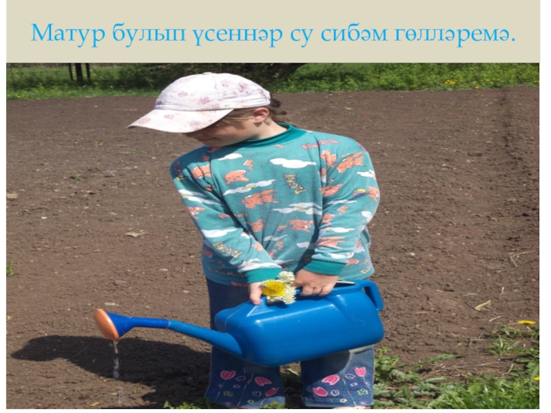 Слайд 15Матур булып үсеннәр су сибәм гөлләремә.