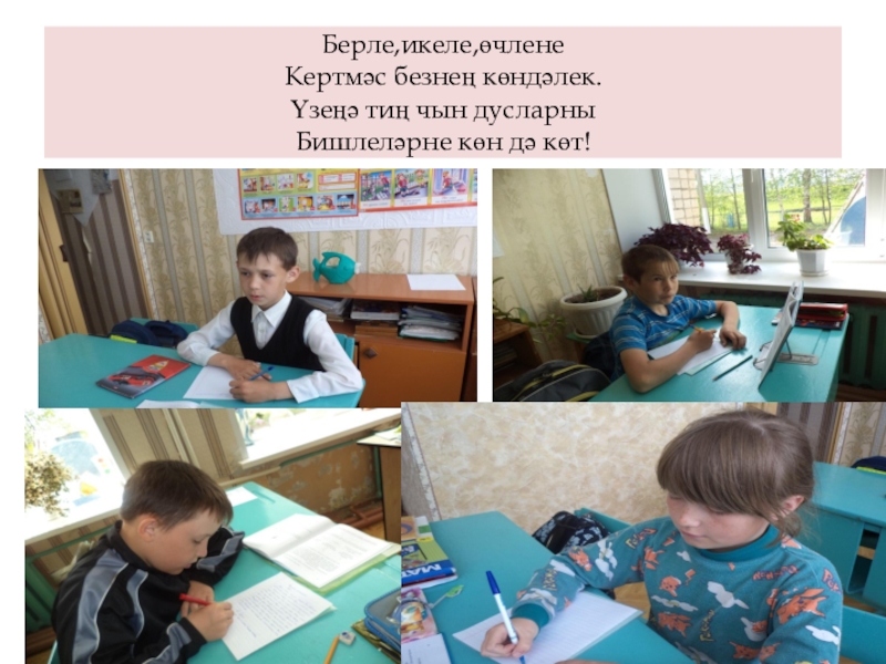 Слайд 5Берле,икеле,өчлене Кертмәс безнең көндәлек. Үзеңә тиң чын дусларны Бишлеләрне көн дә көт!