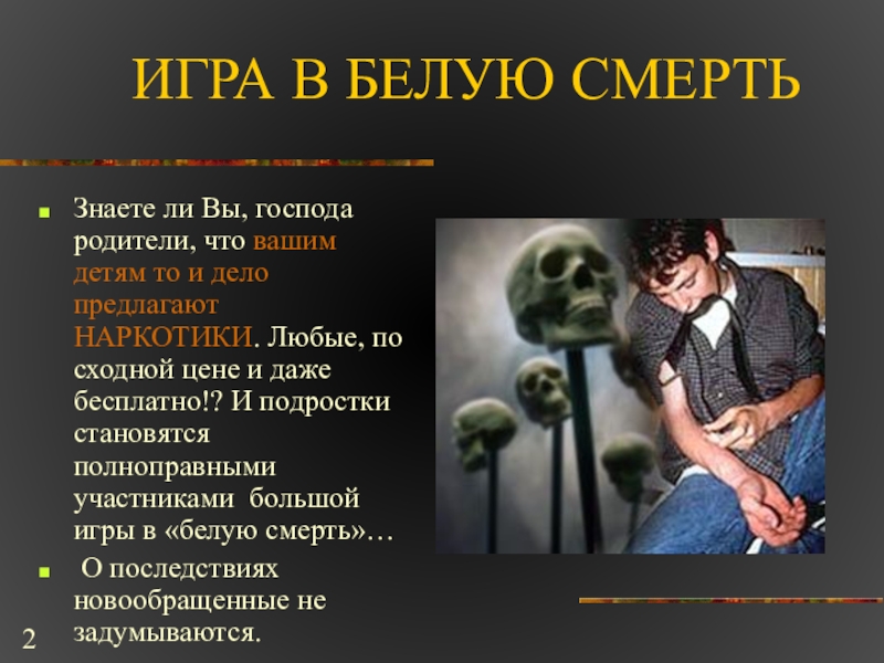 Слайд 2ИГРА В БЕЛУЮ СМЕРТЬ