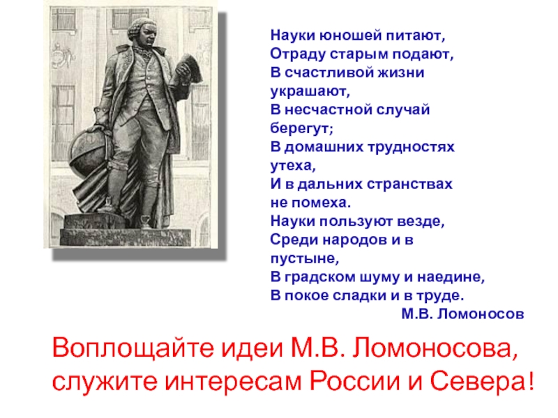 Воплощайте идеи М.В. Ломоносова, служите интересам России и Севера!