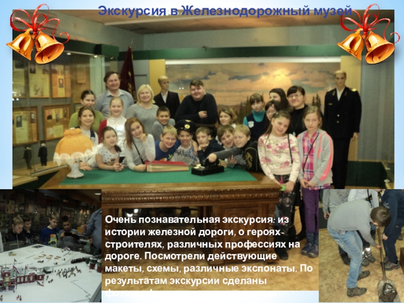Очень познавательная экскурсия: из истории железной дороги, о героях-строителях, различных профессиях на дороге. Посмотрели действующие макеты, схемы, различные экспонаты. По результатам экскурсии сделаны фотографии для классного уголка.