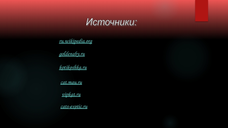 cat.mau.ru ru.wikipedia.org kotikoshka.ru vipkat.ru cats-exotic.ru goldenaby.ru Источники: