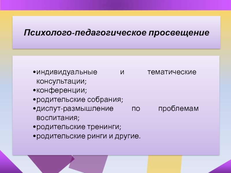Слайд 8 Формы взаимодействия педагога с родителями – это способы организации их