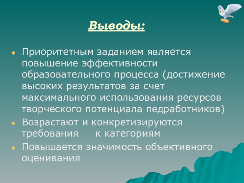 Приоритетным заданием является повышение эффективности образовательного процесса (достижение высоких результатов за