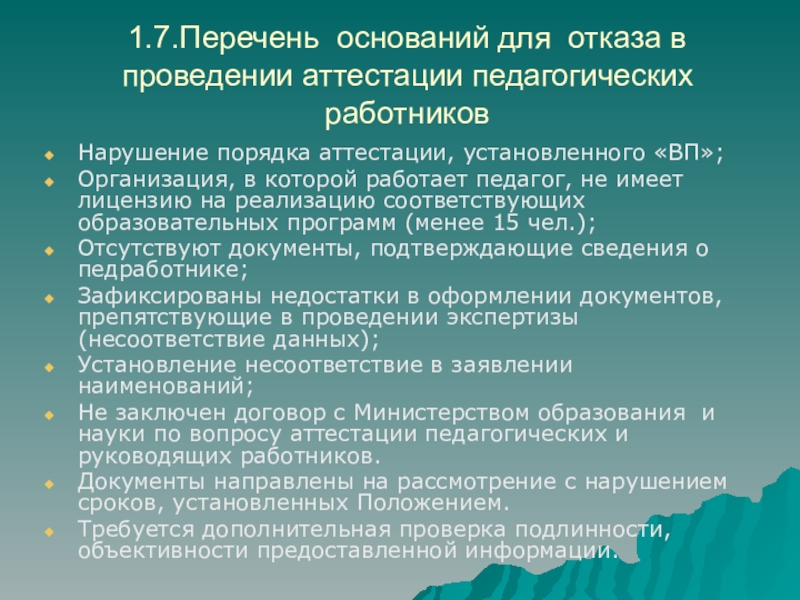 1.9 Внеочередная аттестация на соответствие занимаемой должности при ненадлежащем исполнении обязанностей