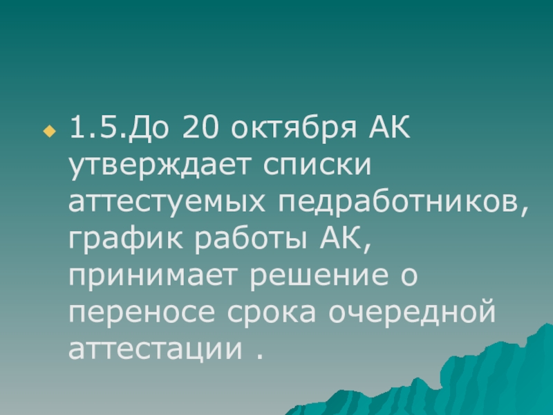 20 октября – заседание аттестационной комиссии, утверждение списков, графика, переносов аттестации